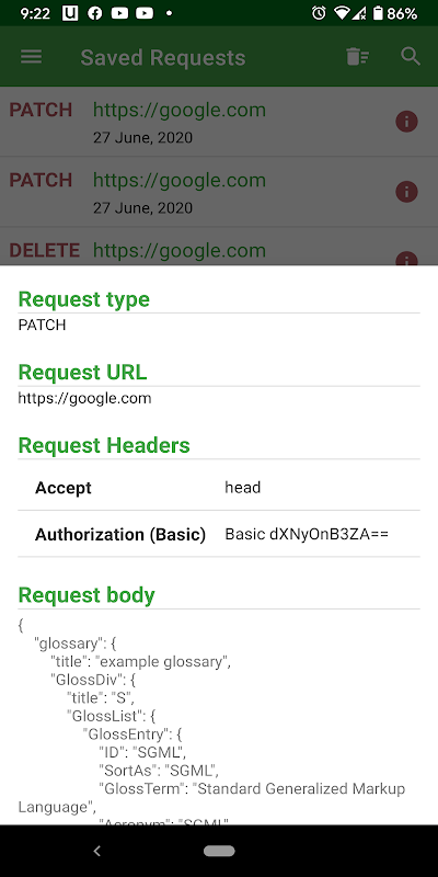 * Buat permintaan HTTP / HTTPS dengan jenis permintaan yang paling umum didukung (DAPATKAN, POST, PUT, HAPUS, KEPALA dan PATCH).