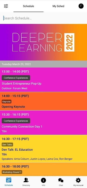 Aplikasi ini dibuat oleh Sched, platform nomor satu untuk pendaftaran sesi dan manajemen kehadiran. Kelola semua detail untuk acara multitrack kompleks Anda di satu tempat. Kami memiliki visi dunia di mana peristiwa dialami tidak bertahan.