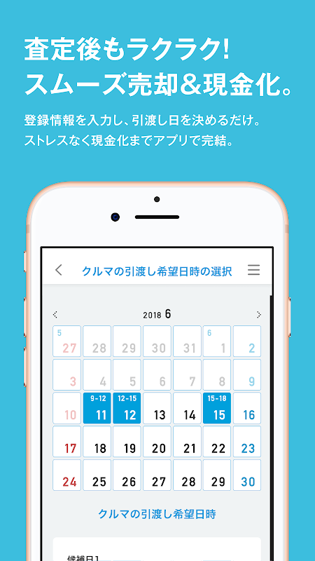 査定金額に納得いただけたら、登録情報を入力して引き渡し日を決めるだけ。ストレスなく現金化までアプリで完結できます。