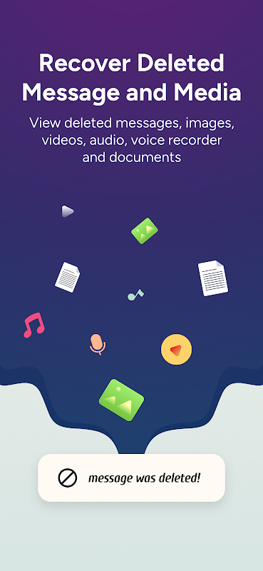 WAMR WhatisDeleted (Aplikasi Pemulihan Pesan yang Dihapus) Membatalkan penghapusan pesan yang dihapus dengan memindai notifikasi perangkat Anda. Ini memberi tahu Anda setiap kali ada pesan atau file media yang dihapus!