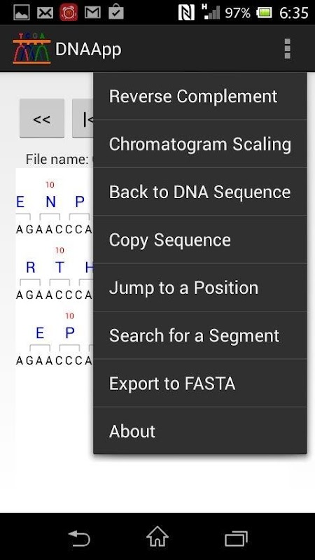 Aplikasi android 1 untuk file AB1 sequencing. DOI: 10,1093 / bioinformatika / btu525