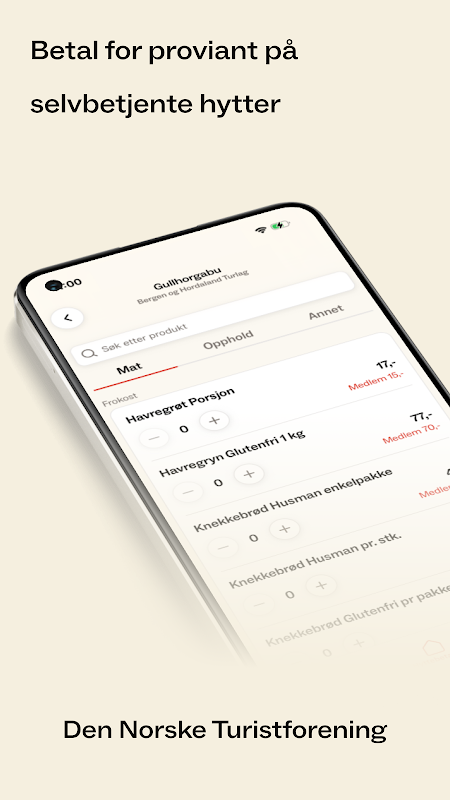 Appen fungerer også offline, slik at du kan legge til produkter på hytter uten mobildekning og betale når du får dekning igjen.