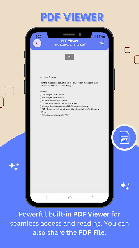Pindai Gambar dan ubah ke PDF. Nantinya, Anda dapat mengelola gambar dan mengonversi PDF di dalam aplikasi.