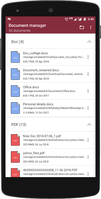 Document Manager is one of the best application in market to get list of all documents available in you android smart phones and tablets.