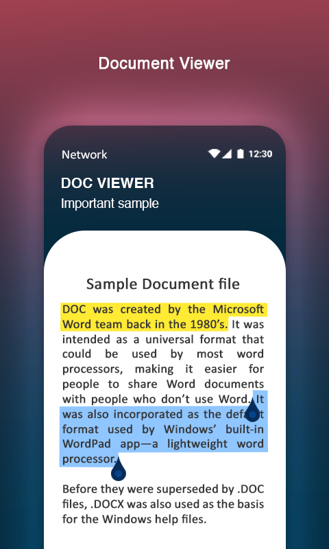 Read the document or view document in completing the task of reading a document with the support of an office reader that is the best doc reader for view the document or read the document. Open the document with a single click on any file that as the user you want to read. Make life easier by reading documents on handy devices instead of carrying books in hard format.