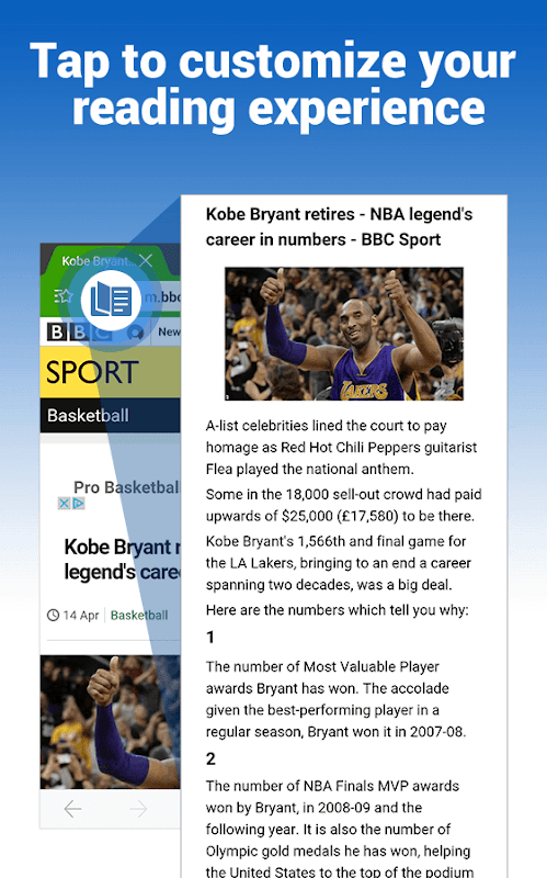 ✔ Customize your reading experience – Just tap a Reader icon in the address bar and Dolphin Reader will provide you with the best online reading experience!