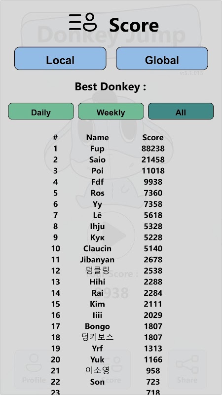 Lompatan keledai adalah permainan seperti corat-coret, Anda naik lebih tinggi dan mendapatkan lebih banyak poin
