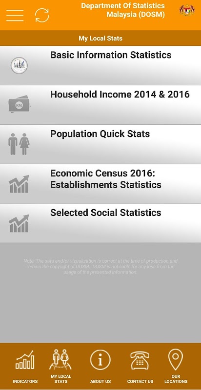 Untuk pertama kalinya, DOSM memperkenalkan statistik di tingkat kabupaten dalam bentuk infografis yang lebih mudah dipahami oleh semua lapisan masyarakat. Informasi ini diperkenalkan melalui sistem interaktif aplikasi mobile yang dikenal sebagai MyLocal Stats. MyLocal Stats akan membantu pengguna untuk mengakses statistik hingga tingkat kabupaten dan lokal untuk perencanaan pembangunan lokal.
