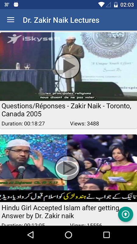 This app include complete Dr.Zakir Naik (نائیک ذاکرڈاکٹر) lectures, speeches, Bayans and debates televised on different occasion. We have tried to include from the oldest to the latest Zakir Nayak lectures and speeches deliver to the audience on different Islamic topics. This application contains all of his English, Urdu and Hindi lectures. Application is updated for new video lectures every week.