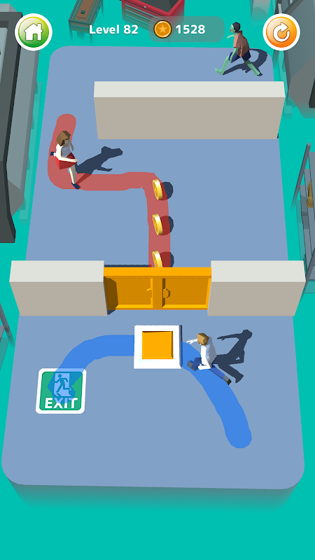 - Gambarkan rute pelarian dan selamatkan orang dari zombie.