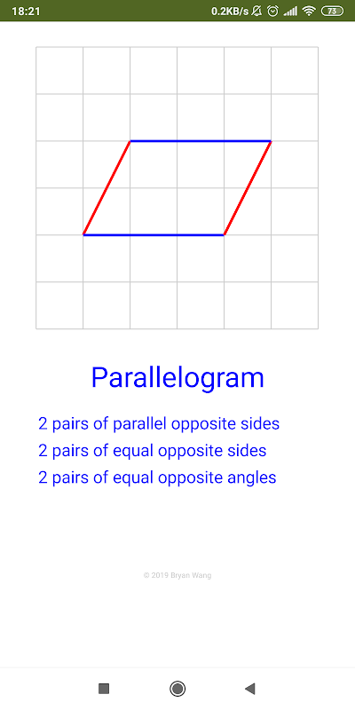 Aplikasi ini memungkinkan Anda untuk menarik sudut untuk menggambar segiempat yang berbeda pada kertas kuadrat. Berdasarkan segiempat dibuat, nama segi empat akan ditampilkan serta sifat-sifatnya.