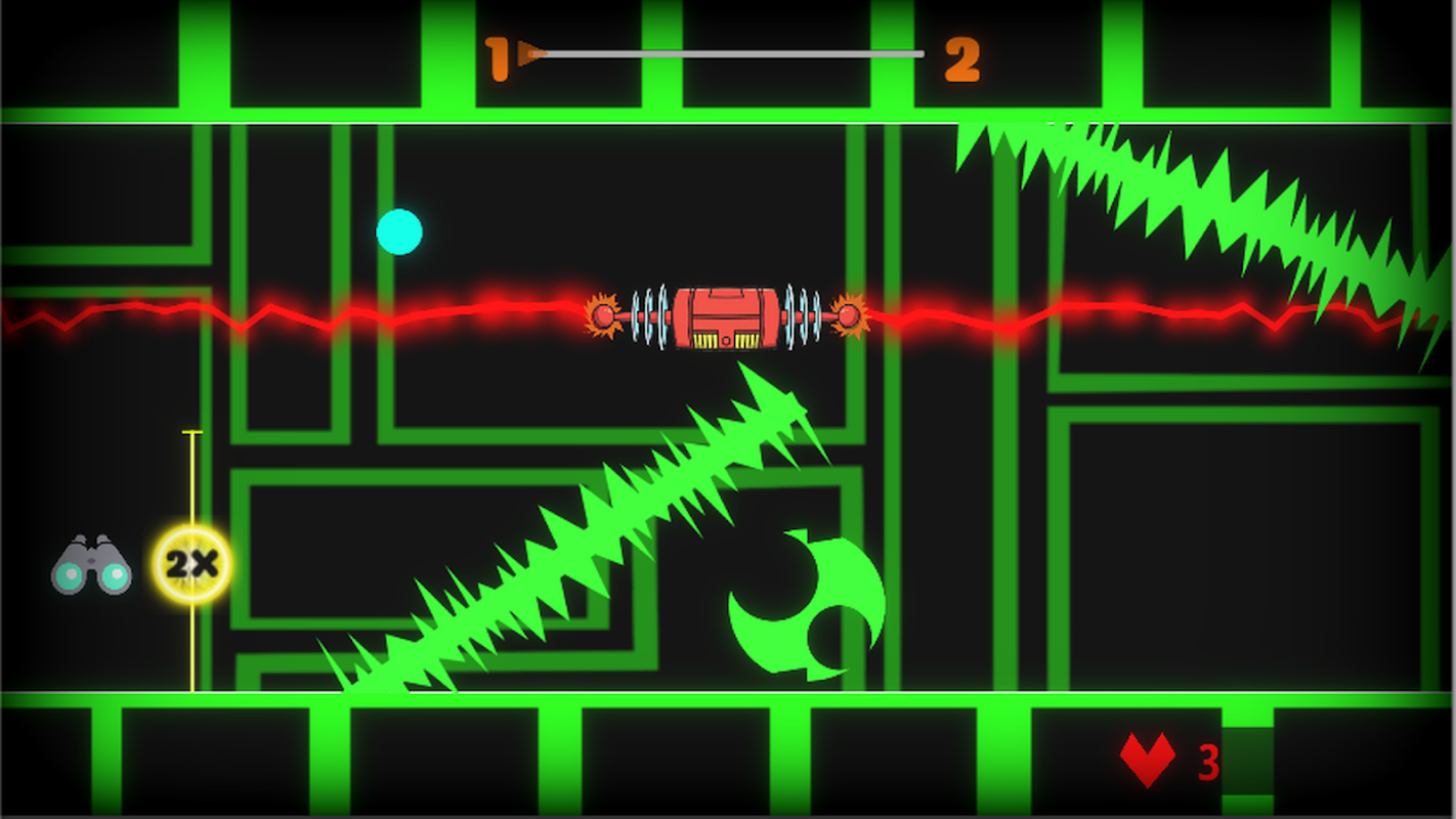 Gunakan laser untuk menggigit bola dan mengendalikannya untuk melewati rintangan.