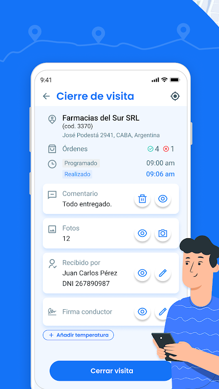 Aplikasi untuk rute yang ditetapkan, daftar klien yang dikunjungi, dan urutan kunjungan yang tepat untuk menyelesaikan jam istirahat. Anda juga dapat mengakses navegador untuk menghubungi klien utama, melihat klien mana yang ingin Anda kunjungi dan beri tahu jika Anda sedang dalam perjalanan pesan atau pesan WhatsApp.