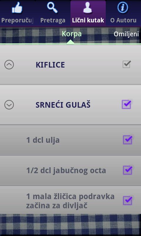 Droid Kuvar podrzava i offline mode u kome mozete pregledati listu omiljenih recepata i listu namirnica za kupovinu.