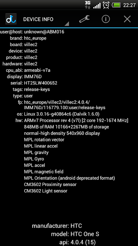 - Device Info - main information about your device software and hardware