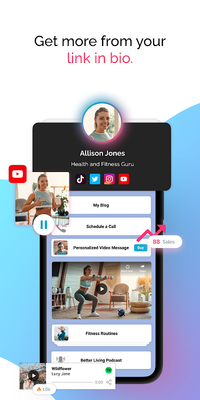 Tambahkan konten favorit Anda ke tautan bio Anda yang dapat disesuaikan sepenuhnya yang dapat Anda bagikan di aplikasi perpesanan apa pun, Instagram, TikTok, Twitter, YouTube, dan banyak lagi.