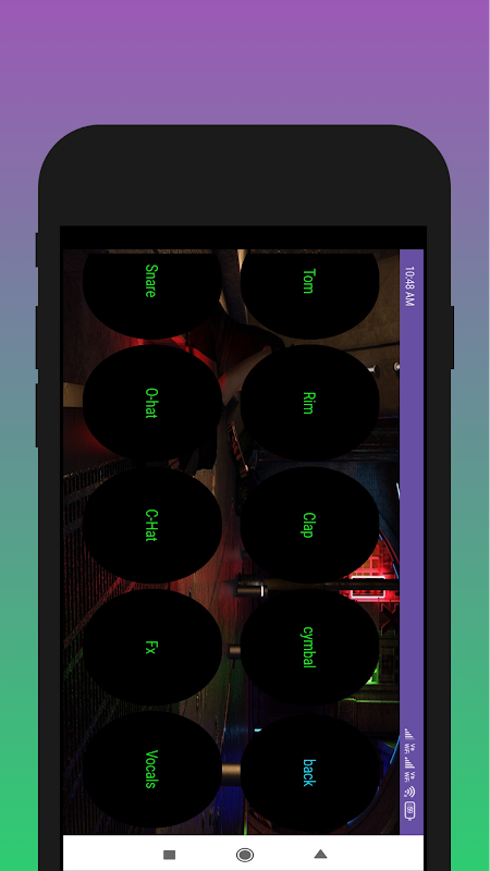 Aplikasi memiliki beberapa crash, Tom, C-Hat, O-Hat, Rim, snare, cymbal, fx, Kick, clap, dan tambalan suara Vokal.