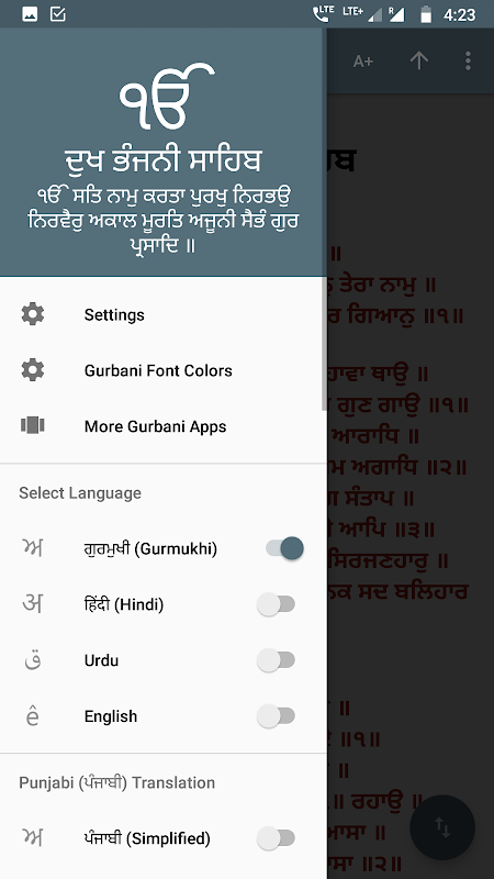 Dukh Bhanjani Sahib dalam Gurmukhi, Hindi, Urdu, Inggris dengan Arti Terjemahan.