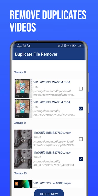 Penghapus File Duplikat menemukan dan menghapus foto, video & file duplikat.