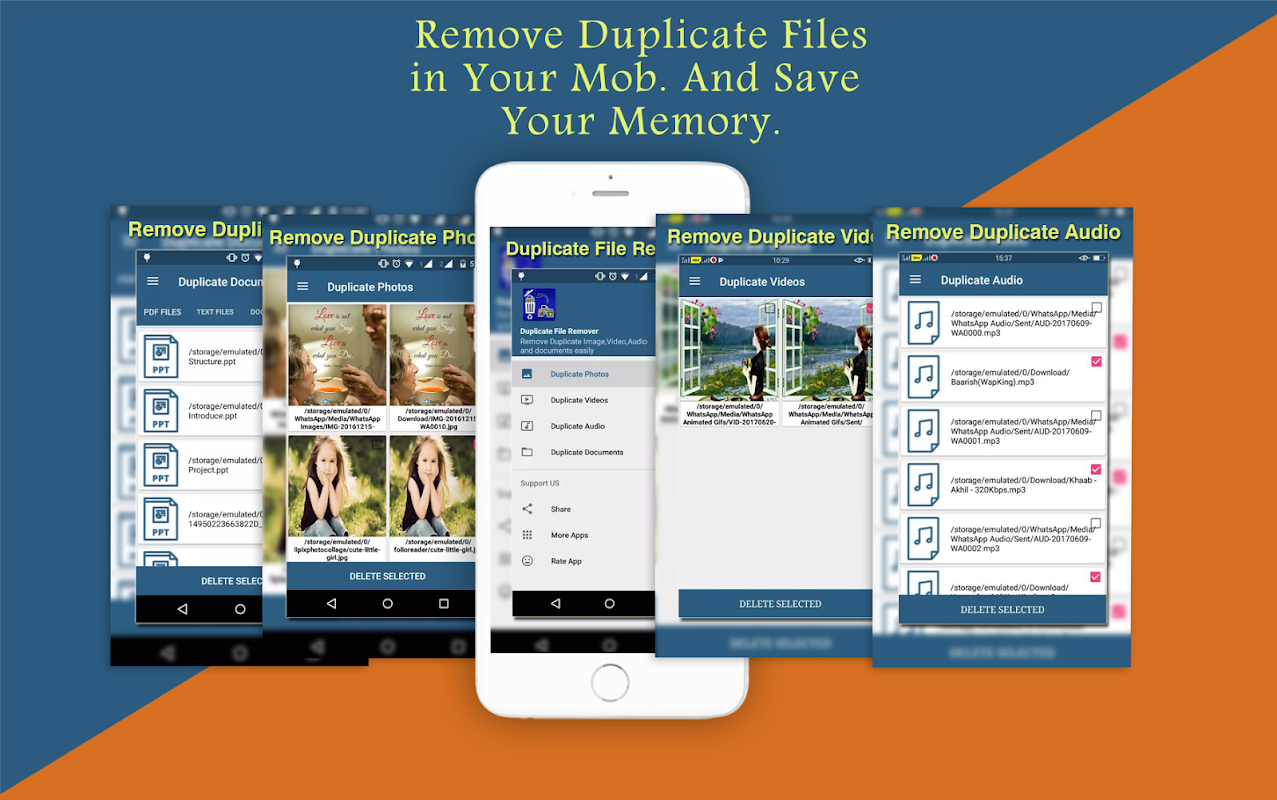 Ada lebih banyak kasus di mana file duplikat yang dibuat dan tidak perlu menempati ruang di perangkat Android Anda dan menjaga memori Anda penuh dan kita menderita hanya karena memori penuh dalam perangkat. Kami berpikir bahwa kita tidak memiliki cukup ruang di perangkat untuk menyimpan something.Storage mungkin penuh hanya karena Anda memiliki banyak duplikat lagu, foto, video dan dokumen dalam Anda phone.So Anda perlu menghapus hal-hal ini untuk ruang bebas pada perangkat Anda untuk menjaga things.So penting lainnya jangan khawatir, Hapus File Duplikat oleh aplikasi ini mudah di klik tunggal.