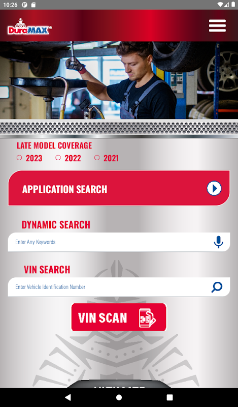 Pilih pencarian "Pencarian Aplikasi" klasik untuk mencari berdasarkan tahun, merek, model, dan mesin kendaraan Anda atau beralih ke "Pencarian Dinamis" yang diperbarui. Dengan kotak pencarian dinamis, Anda dapat mencari kendaraan Anda dengan mengetik sebagian atau seluruh deskripsi kendaraan Anda dan memilih dari daftar saran. Anda juga dapat menggunakan kotak pencarian dinamis untuk memasukkan nomor suku cadang DuraMax untuk membuka halaman informasi produk atau memasukkan nomor suku cadang OE atau pesaing untuk menukarnya dengan suku cadang DuraMax