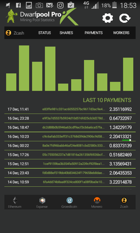 Dwarfpool Pertambangan Statistik PRO - Altcoins Monitor untuk ETH, EXP, XMR, GRS, ZEC