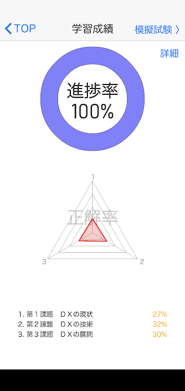 Anda dapat memeriksa kemajuan belajar dan tingkat jawaban yang benar pada grafik, memungkinkan Anda belajar secara efisien sambil memeriksa kelemahan Anda.