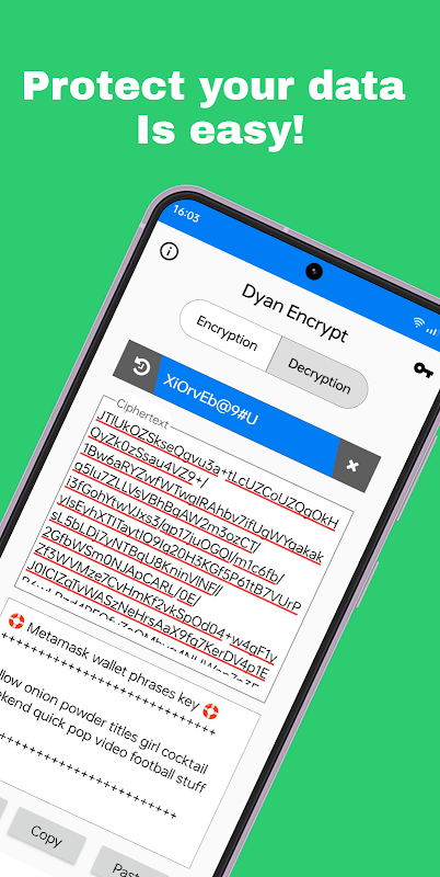▪ Dekripsi Sederhana: Dekripsi informasi Anda dengan mudah menggunakan kunci aman, memastikan data Anda tetap dapat diakses kapan pun Anda membutuhkannya.