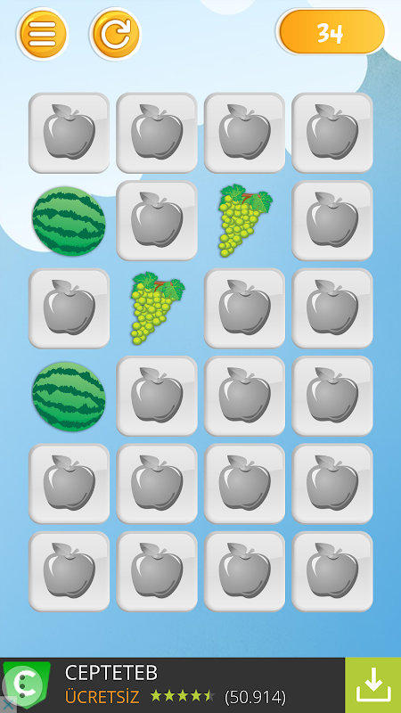 * hafıza oyunu yemekler, sevimli karakterler, meyveler gibi çok sevimli görüntüleri içeren ... ,HD görüntüler