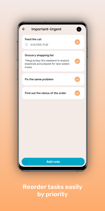 Tetap produktif dan bebas stres dengan E-matrix - pengelola tugas cerdas Anda berdasarkan Matriks Eisenhower.