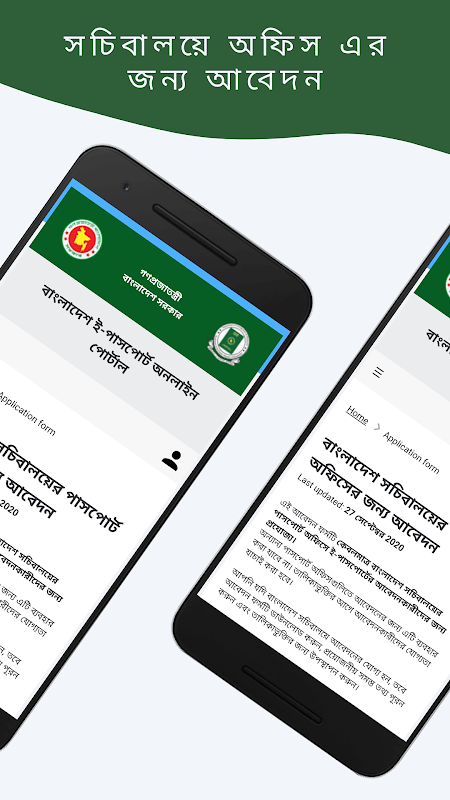 Disclaimer: We are not affiliated with Govt and Local Government divisions in any manner. Directly we don't provide any information about this service, We just embed all Govt websites like (https://www.epassport.gov.bd/landing) to easily access. The content of this application is available free on public domains. For any kind of content removal request contact us on our developer email, we will look into your concern and take action from our side as soon as possible. We don't claim rights on any content in this application. All rights reserved to the content's respective owners.