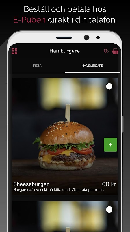Pesan dan bayar bersama kami di E-Puben di Umeå langsung di ponsel Anda.