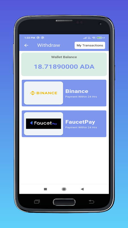 Di aplikasi ini, Anda dapat memainkan beberapa permainan dan mengumpulkan sejumlah kecil koin ADA (Cardano), yang dapat Anda bayarkan ke Dompet Binance atau FaucetPay Anda saat Anda memenuhi jumlah koin minimum yang dibutuhkan.
