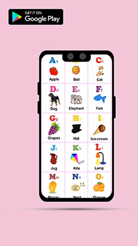 Kids Learning app is for kids to help kids learn Alphabet, learn numbers, learn rhymes, learn fruit names, learn animal names with attractive design & audio.