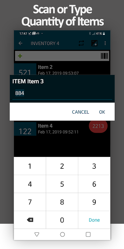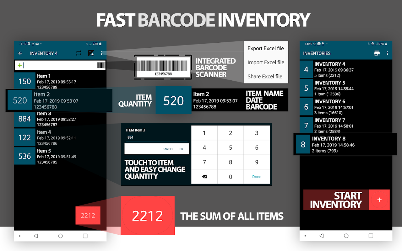 Persediaan sederhana dan cepat dan gratis. Memuat kode batang atau kode QR dengan scanner yang terintegrasi atau pembaca barcode klasik. Anda dapat memberi nama kode dan menulis mereka secara langsung, atau Anda dapat memindai beberapa item beberapa kali. Semua hasil persediaan dapat diberi nama dan dikirim, saham atau menyimpan sebagai csv, file excel. Sebuah subjek visual gelap membantu mengoptimalkan baterai dan kontras untuk kemudahan penggunaan. Melacak produk Anda mudah yang belum pernah sebelumnya!