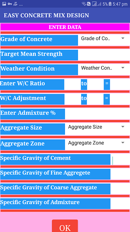 Aplikasi mobile desain campuran untuk kelas beton yang berbeda
