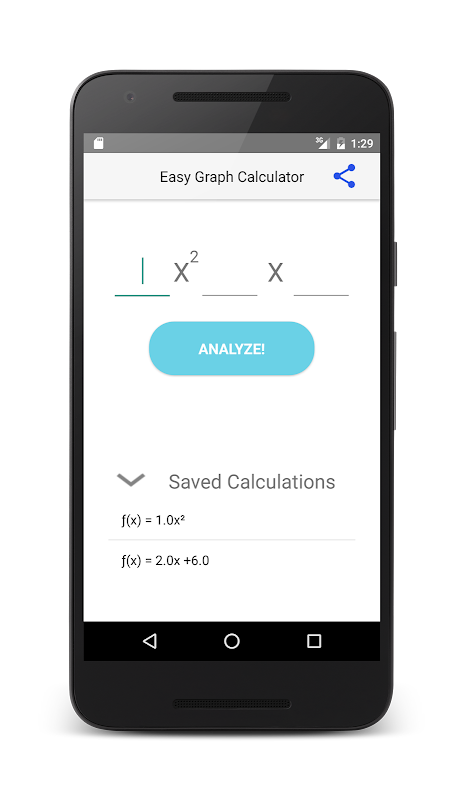 Tidak seperti aplikasi kalkulator grafik lain yang membingungkan pengguna dengan beberapa pilihan, Mudah Graphing Calculator dilengkapi dengan antarmuka pengguna yang sangat sederhana. Cukup masukkan pre-perbaikan untuk persamaan dalam aplikasi parabola kalkulator, dan tekan tombol "Analyze" tombol. Biola! Anda akan disajikan dengan grafik visualisasi persamaan itu.
