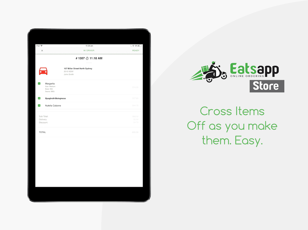 Aplikasi ini juga dapat digunakan sebagai sistem "bump" atau tampilan dapur di mana semua pesanan online ditampilkan di layar dan "dihancurkan" setelah matang.