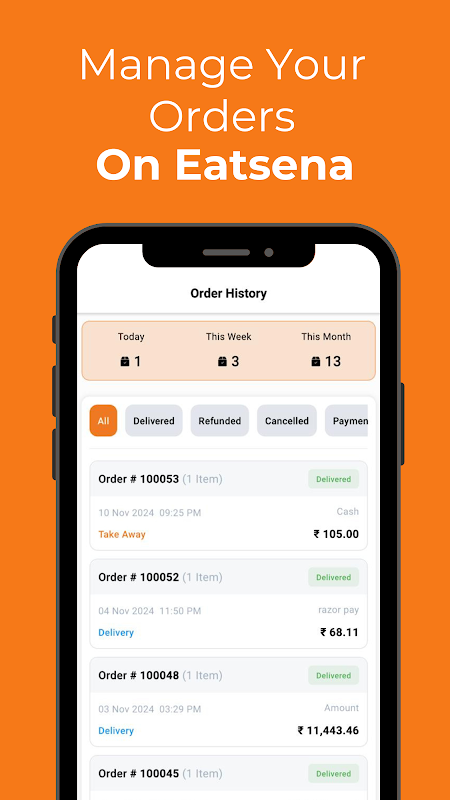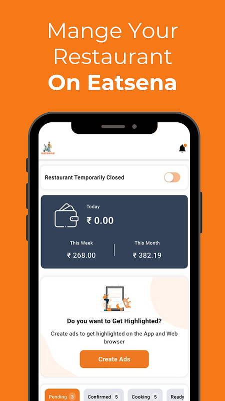 Aplikasi Restoran Eatsena dirancang agar pemilik restoran dapat mengambil kendali penuh atas bisnis mereka di platform pesan-antar makanan Eatsena. Aplikasi ini memberikan solusi lengkap untuk mengelola menu Anda, melacak pesanan, melihat statistik, dan banyak lagi—semuanya dari ponsel Anda. Baik Anda memperbarui penawaran harian, memeriksa tren penjualan, atau mengelola dana, Eatsena Restaurant menjadikannya mudah dan efisien.