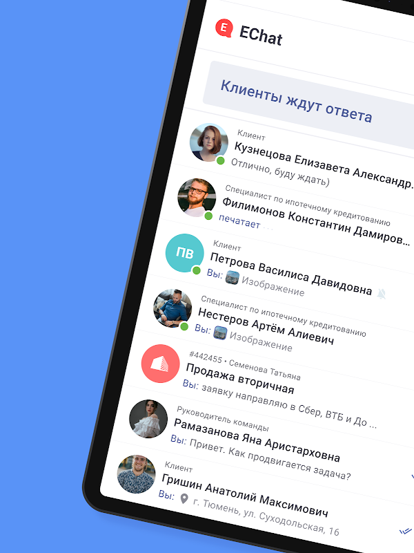 Messenger untuk klien dan karyawan perusahaan "Etazhi"
