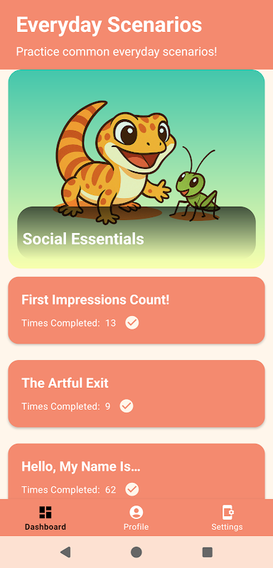 Latih kosakata dan frasa yang relevan bagi Anda, menggunakan Flashcard interaktif dan alat Pencocokan Kata yang dirancang untuk memperkuat kebutuhan bahasa sehari-hari Anda.