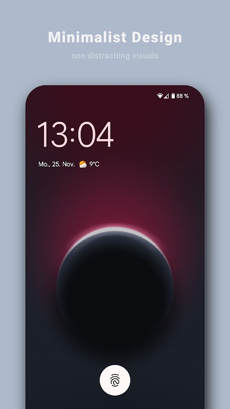 • Visual yang Tidak Mengganggu: Nikmati desain yang tenang dan minimalis yang menyempurnakan layar utama Anda tanpa terlalu mencolok atau mengganggu. Sempurna untuk pengguna yang lebih menyukai estetika bersih dan elegan.