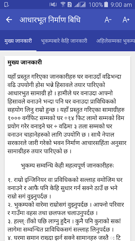 Di sini kita dengan Aplikasi Seluler Pertama di mana Anda bisa mendapatkan informasi tentang teknik bangunan dasar untuk berbagai pola konstruksi, teknik Bangunan sesuai dengan kode bangunan negara dan bahkan memperkirakan sendiri kuantitas dan biaya keseluruhan konstruksi. Aplikasi ini sedang diteruskan oleh anggota Dewan Penasihat Pemuda Negara Bagian 2015 dengan dukungan dari Kedutaan Besar AS