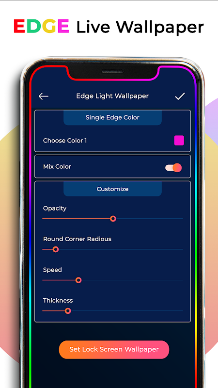 Edge Lighting - Edge Notification - Rounded Corner application which has a different way to change live wallpaper with Awesome effects. this app has also awesome live wallpaper video with which your mobile screen more looking stunning, set your choice Edge effect wallpaper with your chosen setting.