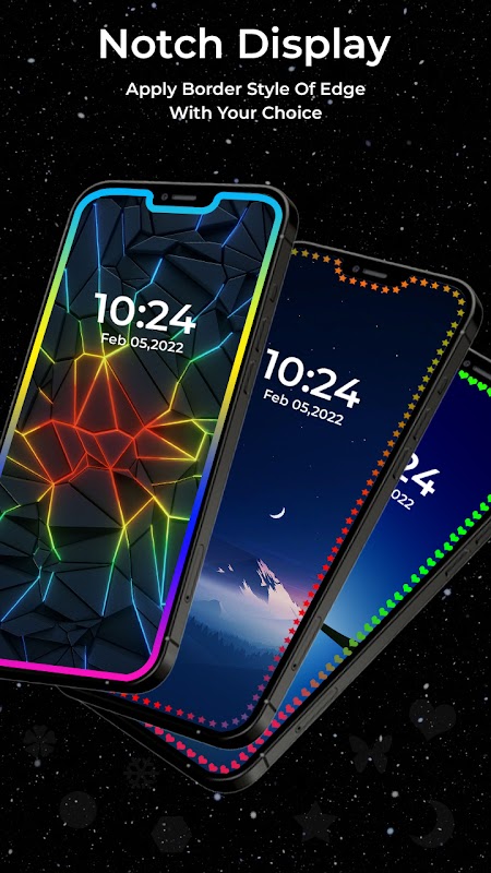 - Mudah mengatur tepi layar multi warna menjadi wallpaper hidup.