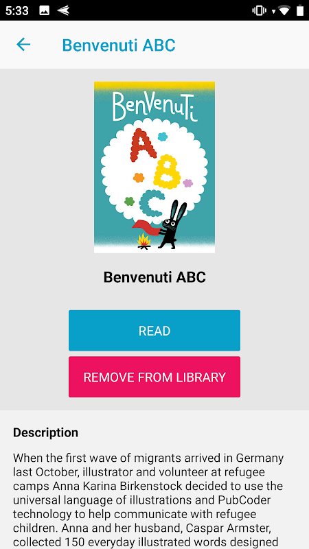 Isi pertama yang Anda lihat adalah Benvenuti ABC, sebuah Gambar Interaktif Kamus diciptakan untuk menyambut anak-anak migran ke Italia dengan papan interaktif dan track audio di Italia, Inggris dan Arab. Isi kedua adalah Benvenuti ABCinese, proyek ini dimaksudkan sebagai kontribusi kecil untuk integrasi banyak anak Cina yang menghadiri ruang kelas Italia sehari-hari. Dirancang oleh 140 ilustrator gratis dan menempatkan bersama-sama berkat kerja tim Pubcoder, itu termasuk 210 kata-kata sehari-hari dengan track audio dalam tiga bahasa (Italia / Inggris / Cina).