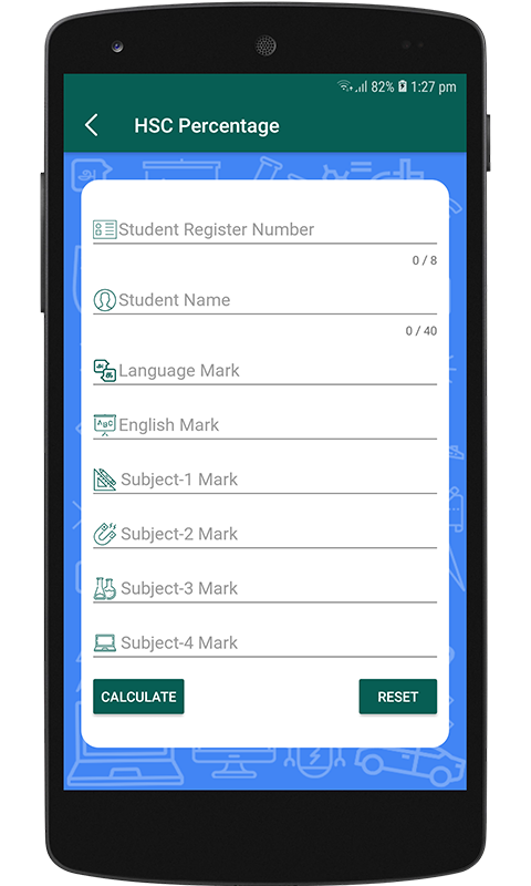 Cukup masukkan Nomor Daftar Siswa, Nama, dan Nilai yang diperoleh dari 100 atau 200 untuk setiap mata pelajaran. Aplikasi ini secara otomatis menghitung hasil Anda dan menghasilkan Laporan PDF untuk referensi di masa mendatang.
