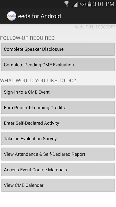 - View your CME/CE records (which shows events you self-report plus any events you attended where you used your eeds swipe card)