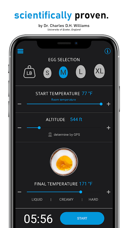 • Cukup masukkan beberapa informasi tentang telur dan gunakan penggeser dan gambar pratinjau untuk memilih bagaimana Anda ingin telur sarapan Anda.