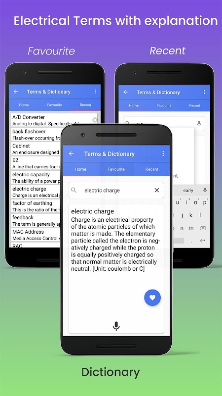 Satu Aplikasi untuk perhitungan listrik, rumus, kamus, dan simbol yang berbeda.